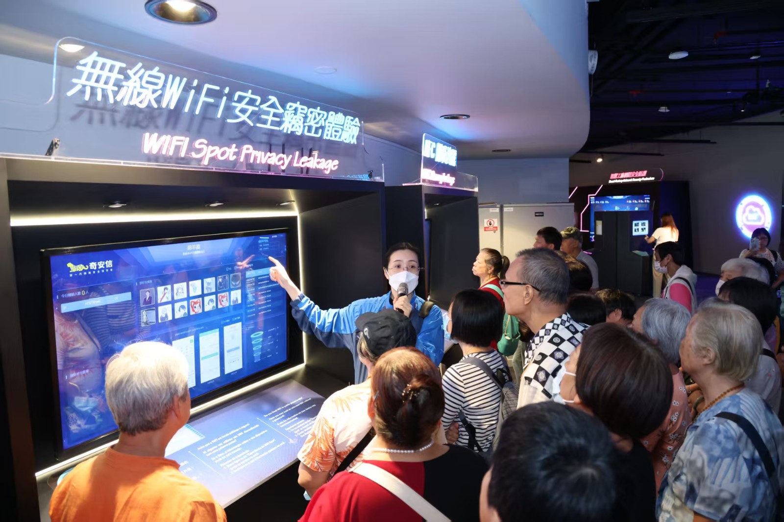 The elderly participants explored cybersecurity-related interactive exhibits at the Data Science Gallery