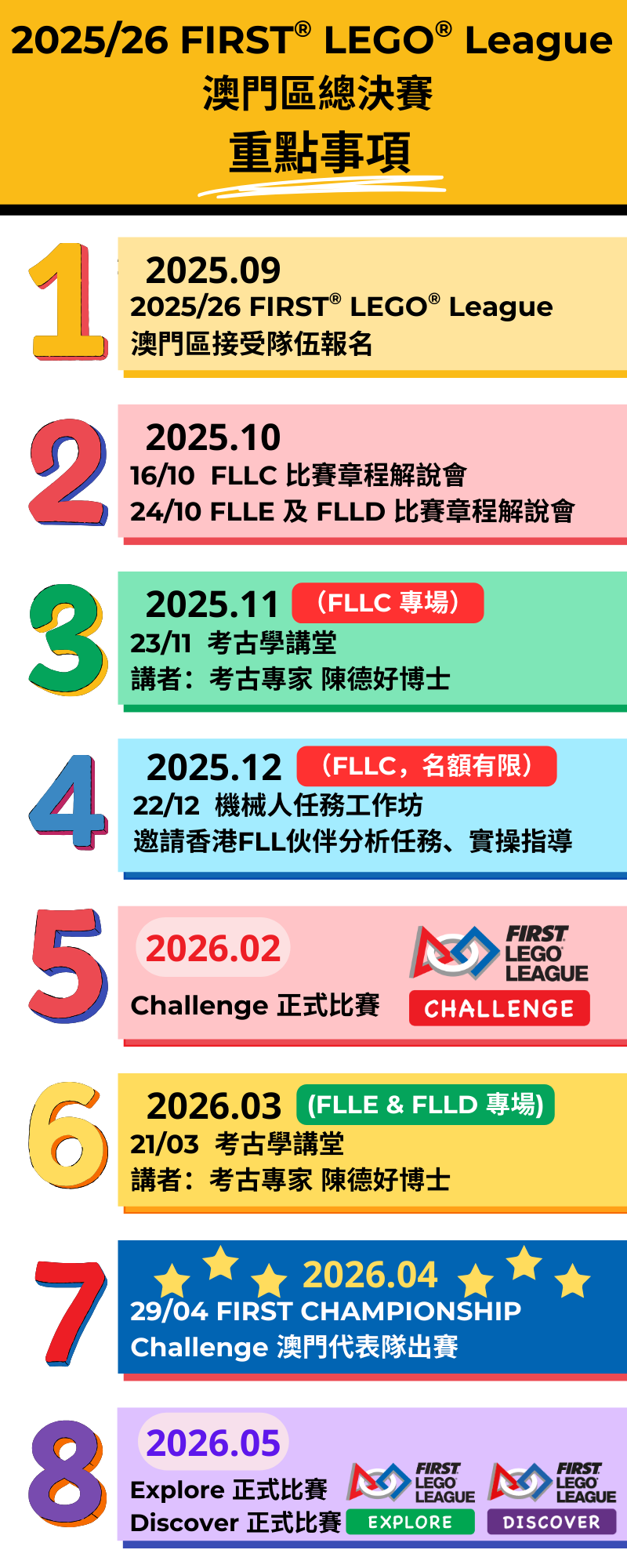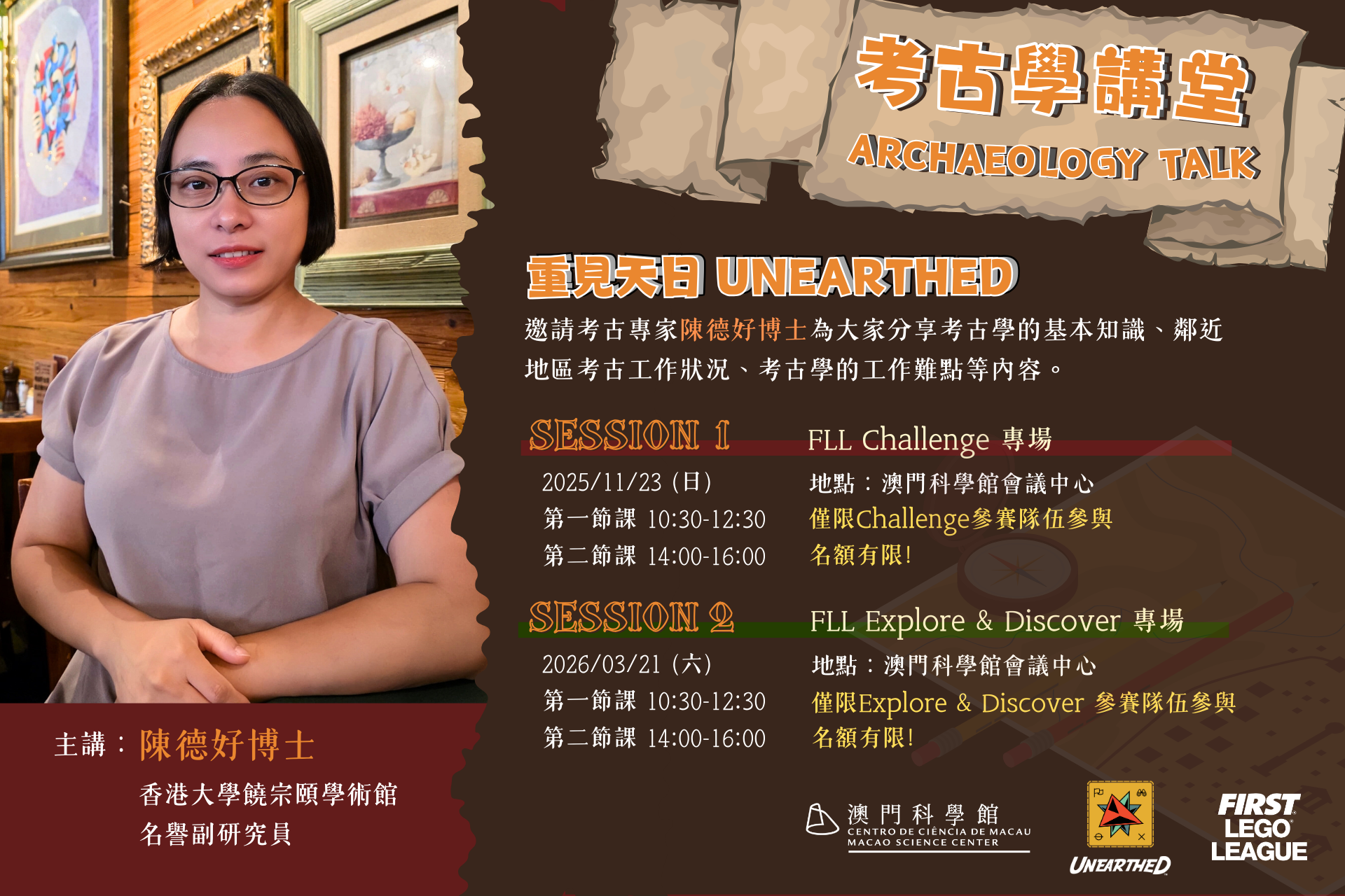 FIRST® LEGO®League為國際STEM競賽,通過動手實踐,激發青少年創意思維,培養他們的科技領域技能,並期望促進本澳青少年與國際交流的機遇。本年主題UNEARTHED將追尋過去的蹤跡:發掘隱藏的寶藏、神秘的文物和被遺忘的故事。石刻上的古老符號背後隱藏著什麼?考古學家在這項令人興奮的工作中需要哪些工具?你的想法又將如何塑造未來? 做好準備:挖掘、探索、發現-與您的團隊一起揭開UNEARTHED的世界!