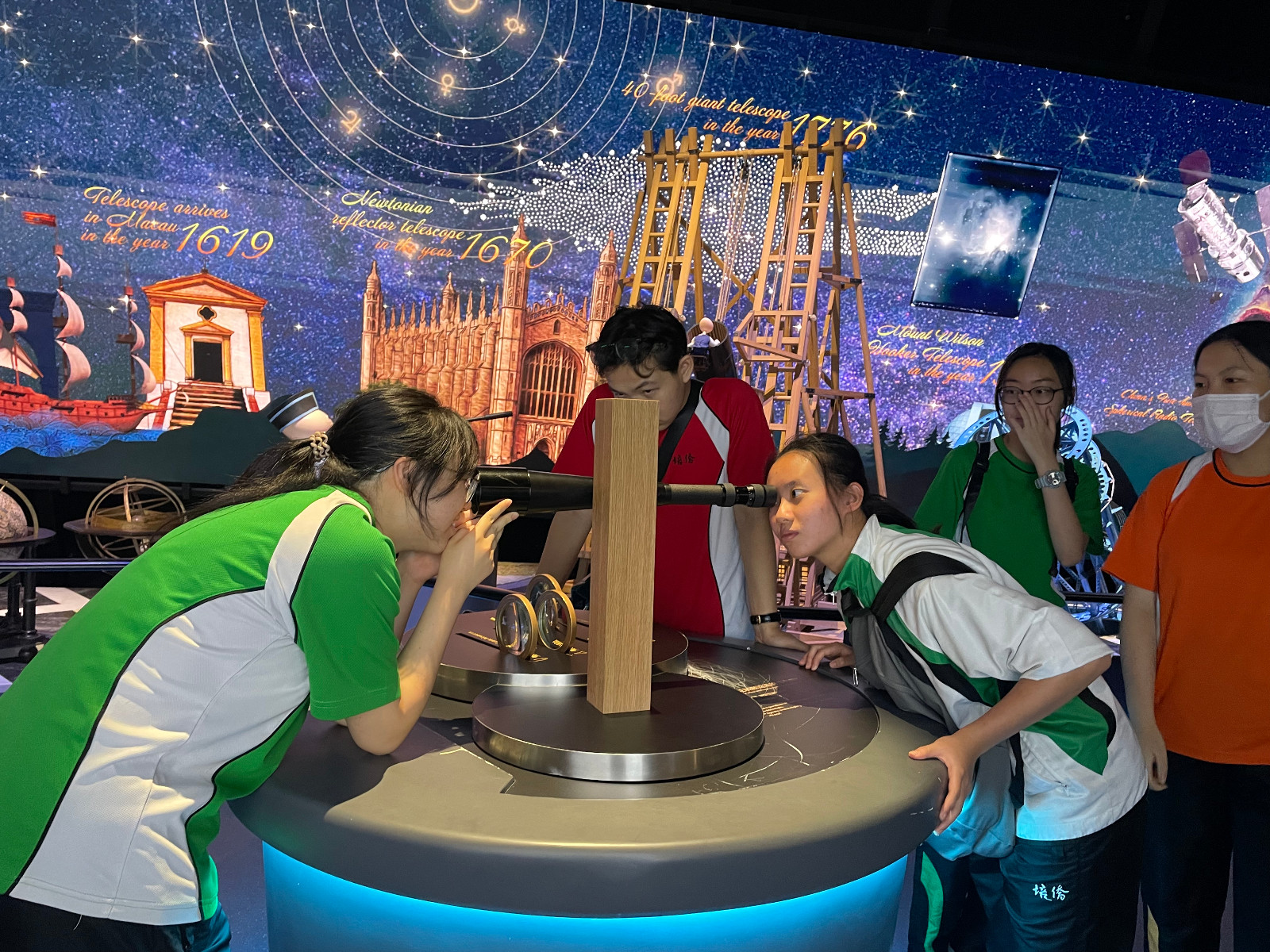 師生們首先到天文館欣賞中國載人航天的球幕影片,了解國家航天科技的成就。隨後參觀了中國科學家精神廳以及天文科學展廳“觀星者”,學習科學家們無私奉獻的精神以及古今中外的天文觀測科學史。最後來到“發現・養心殿”主題數字體驗展,一起體驗皇帝在養心殿的起居生活。他們對館內各種互動展品表現出濃厚興趣,紛紛動手嘗試體驗展品,在過程中享受探索科學的樂趣。