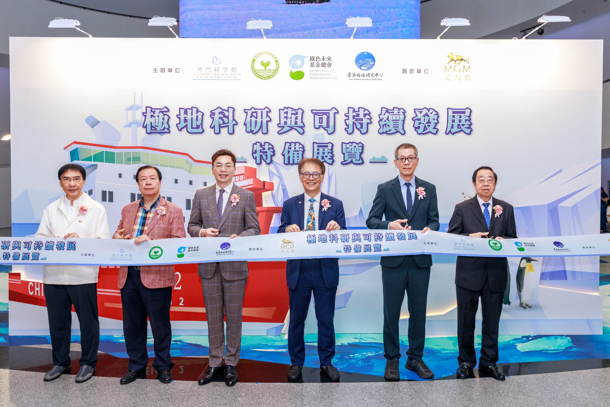 今日下午,澳門科學館為“極地科研與可持續發展特備展覽”舉行開幕儀式。主禮嘉賓包括:香港極地研究中心創辦人何建宗、美高梅人力資源及可持續發展高級副總裁李建恆、澳門科學館副館長張雄發、澳門綠色環境保護協會主席倫永燊、綠色未來基金總會義務行政總裁高贊覺及香港極地研究中心行政總裁、綠色未來基金總會顧問許朝英。
