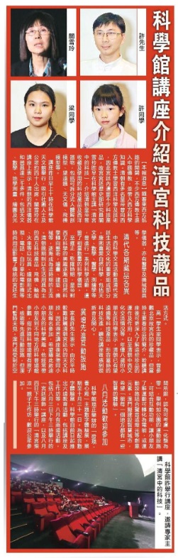 《澳門日報》科學館講座介紹清宮科技藏品