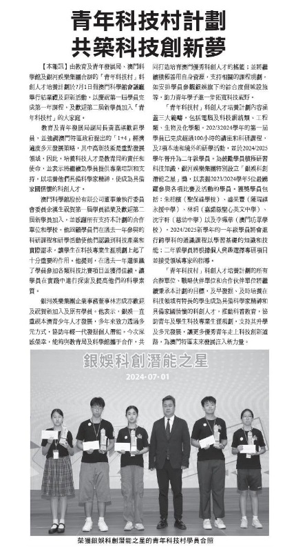 《現代澳⾨⽇報》青年科技村計劃共築科技創新夢