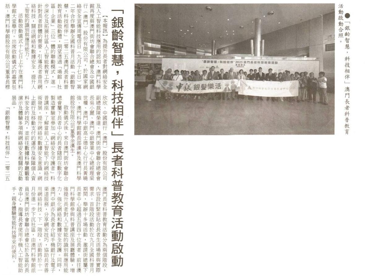 2025.09.21《現代澳門日報》「銀齡智慧‧科技相伴」長者科普教育活動啟動