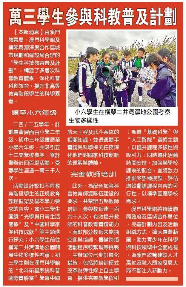 2025.11.18《澳門日報》萬三學生參與科教普及計劃