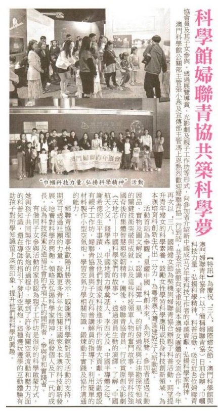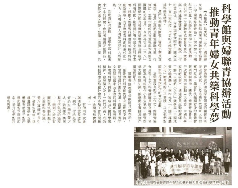 2025.03.04《澳門會展經濟報》澳門科學館與婦聯青協合辦“巾幗科技力量·弘揚科學精神”活動推動青年婦女共築科學夢