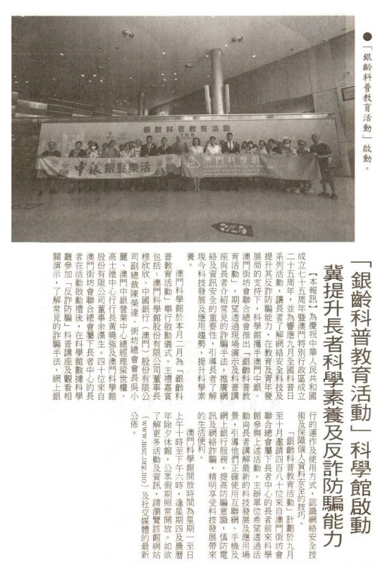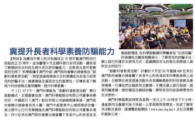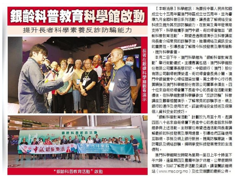 《現代澳門日報》「銀齡科普教育活動」科學館啟動 冀提升長者科學素養及反詐防騙能力