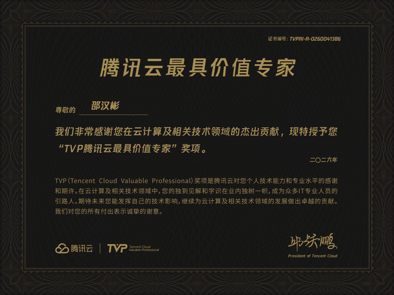 O TVP constitui um prémio honorífico atribuído pela Tencent Cloud a especialistas técnicos, visando a construção de um ecossistema robusto de computação em nuvem, o reforço da comunicação eficaz entre a plataforma, especialistas e utilizadores, bem como a concretização da visão de “influenciar o mundo através da tecnologia”. Desde o seu lançamento em 2018, já distinguiu mais de 270 especialistas provenientes de áreas tecnológicas de vanguarda, como big data, inteligência artificial e blockchain.