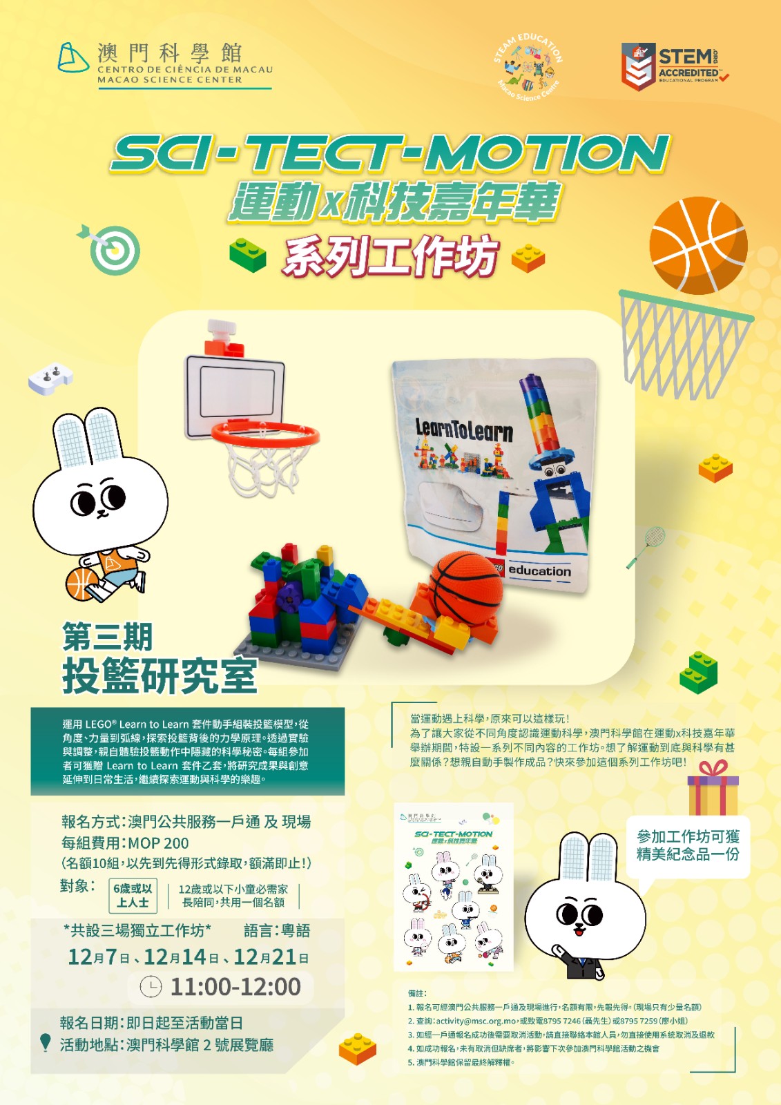 為了讓大家從不同角度認識運動科學,澳門科學館在運動x科技嘉年華舉辦期間,特設一系列不同內容的工作坊。想了解運動到底與科學有甚麼關係?想親自動手製作成品?快來參加這個系列工作坊吧!