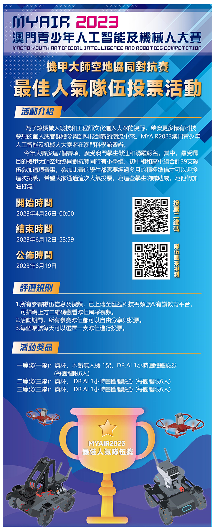 MYAIR2023機甲大師空地協同對抗賽_最佳人氣隊伍投票活動
