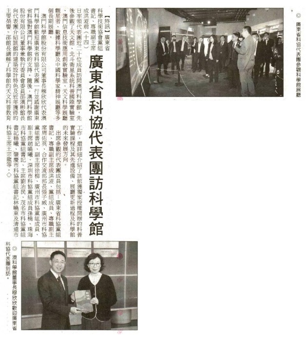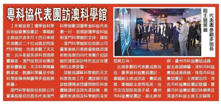 《澳門日報》粵科協代表團訪澳科學館