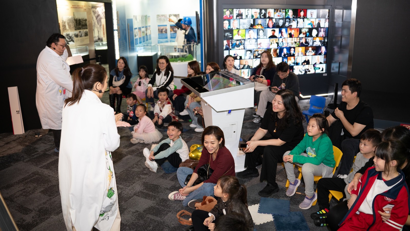 活動首站為參觀“星耀中國 科創未來”系列展覽。參加者透過互動展品、實物及圖文解說,認識“兩彈一星”的研發過程與石油勘探等領域的關鍵技術突破與成就,以及這些科技領軍人物的奮鬥故事,學習科技強國背後的集體智慧與堅韌精神。隨後,婦聯青協會員一行欣賞原創光影劇《天地芯——中國科學家們的故事》,透過演員生動的演繹,了解“中國航天之父”錢學森“中國地質力學奠基人”李四光及“中國半導體之母”謝希德的生平事蹟,以及他們對國家科技進步所作的偉大貢獻。活動還設有親子工作坊,婦聯青協會員與子女在科普講解員的指導下,利用簡單的材料製作小型空氣炮,學習空氣力學相關知識,鍛煉動手實踐及協作溝通的能力。