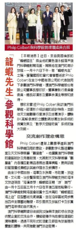 2025.01.18《澳門日報》“龍蝦先生”參觀科學館