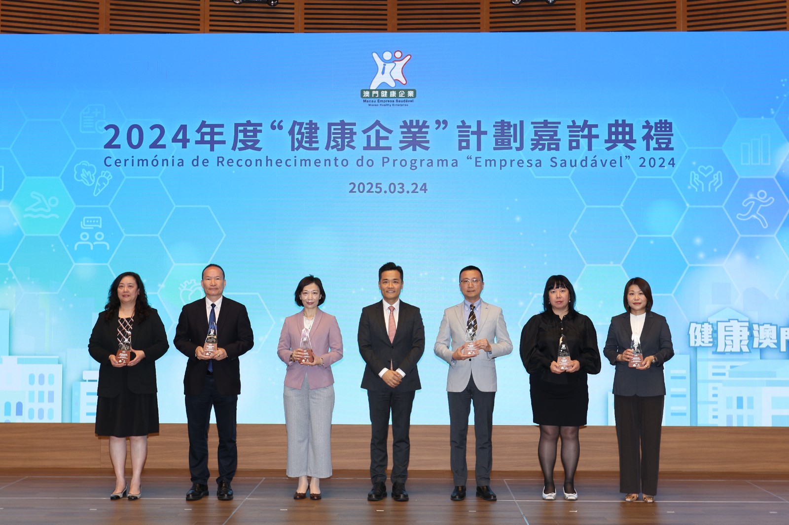 由澳門特別行政區政府衛生局及健康城市委員會聯合主辦的“健康社區”計劃啟動儀式暨2024年度“健康企業”計劃嘉許典禮,今(24)日假澳門科學館會議廳舉行,包括澳門科學館在內的16間企業獲得2024年度“健康企業”殊榮。澳門科學館股份有限公司董事長穆欣欣代表本館接受獎項。