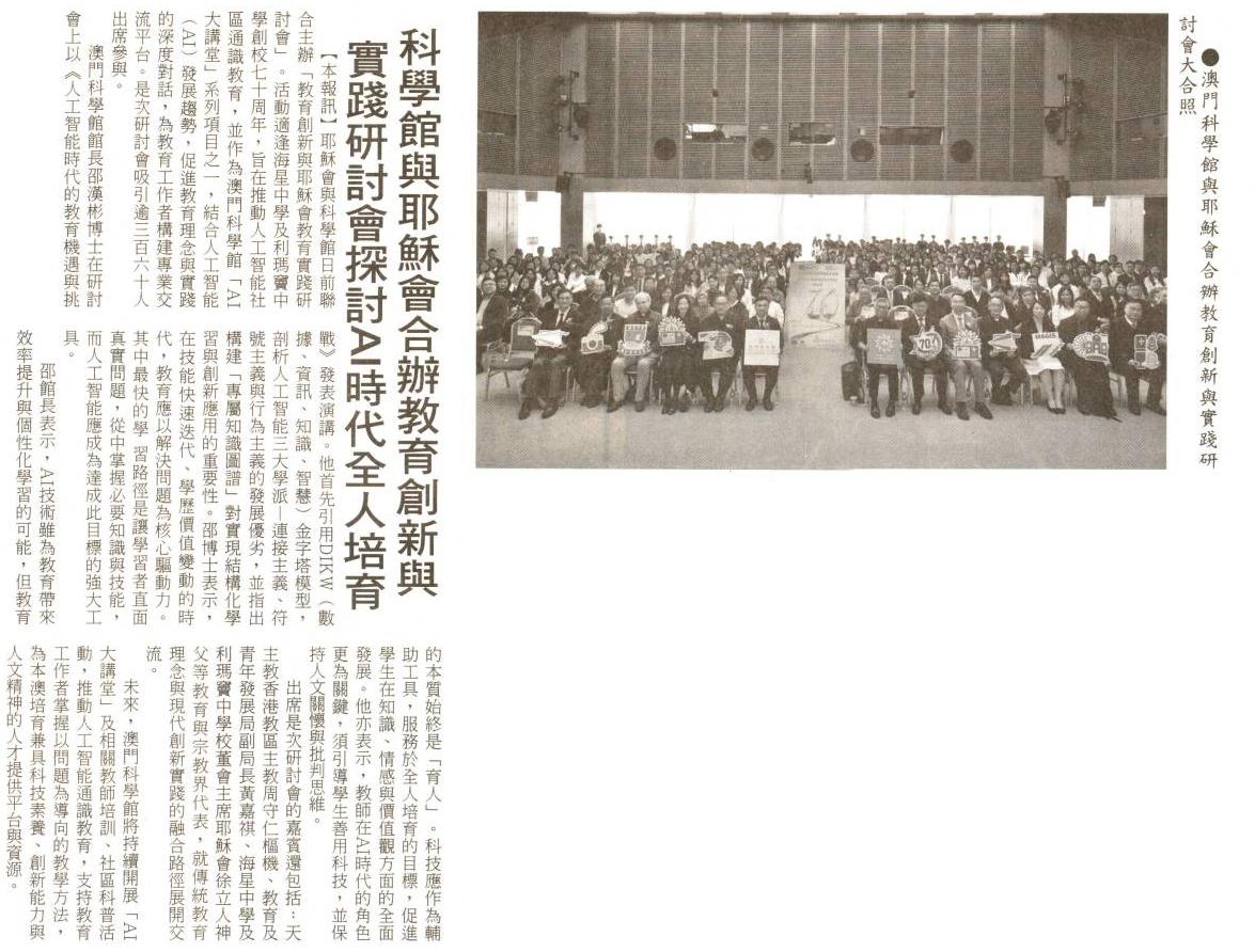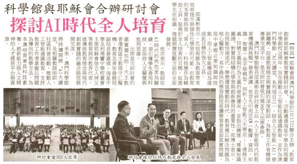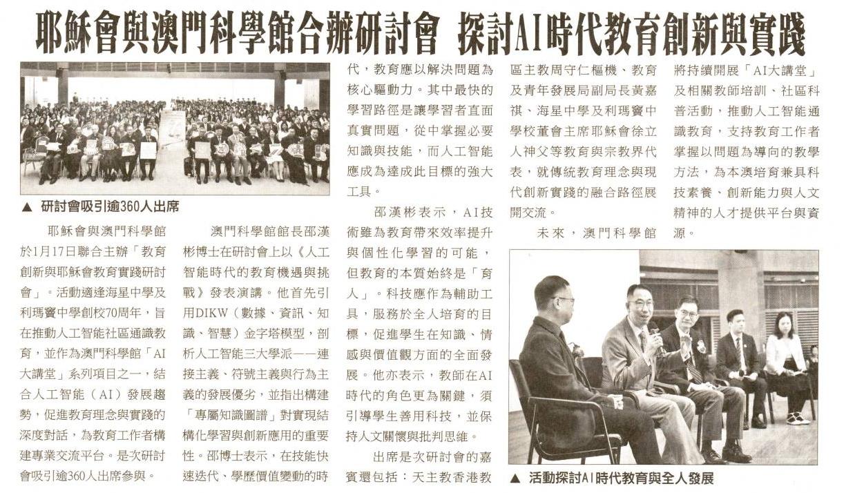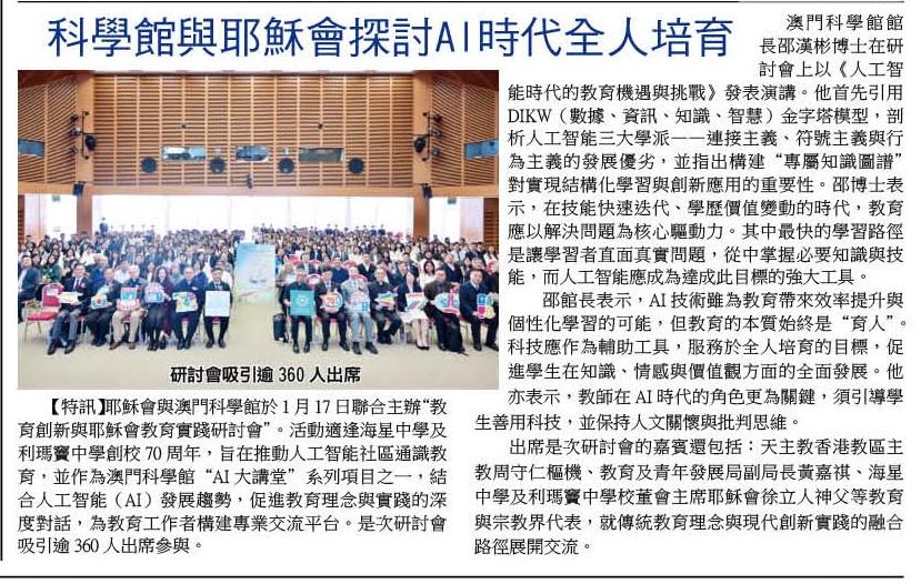 2026.1.26《捷報》耶穌會與澳門科學館合辦研討會 探討AI時代教育創新與實踐