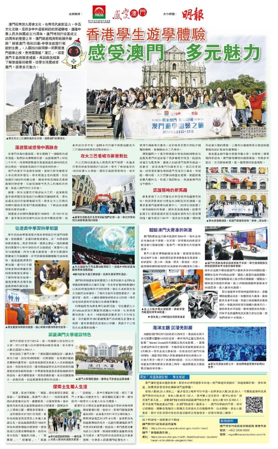 《明報》香港學生遊學澳門 感受地道文化多元魅力