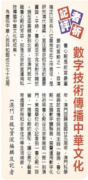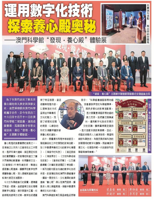 《澳日學生報》運⽤數字化技術 探索養⼼殿奧秘 ——澳⾨科學館"發現 · 養⼼殿"體驗展