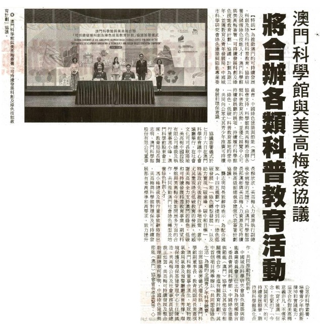 《華僑報》澳⾨科學館與美⾼梅簽協議 將合辦各類科普教育活動