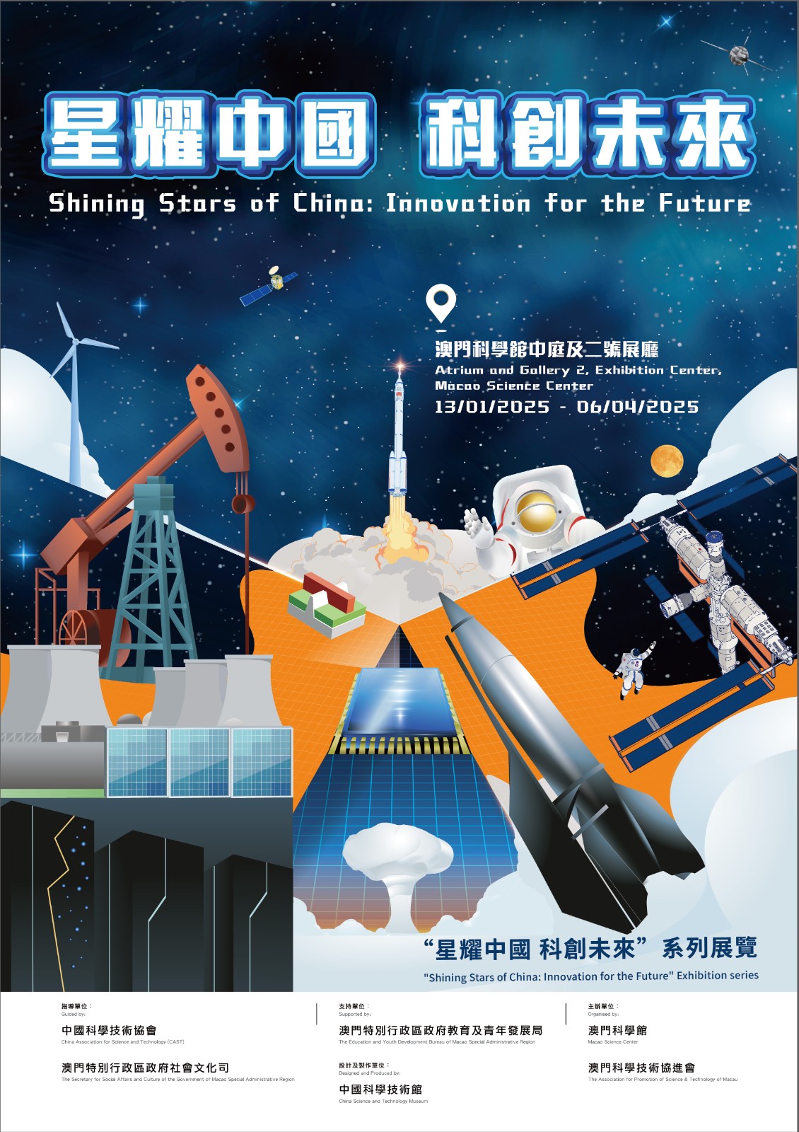 “星耀中國 科創未來”系列展覽由中國科學技術協會及澳門特別行政區政府社會文化司指導、教育及青年發展局支持、中國科學技術館設計及製作,利用互動展品、實物展示及珍貴圖片,展現新中國成立75年來所取得的卓越成就、關鍵核心技術突破,以及科學家們的奮鬥故事。