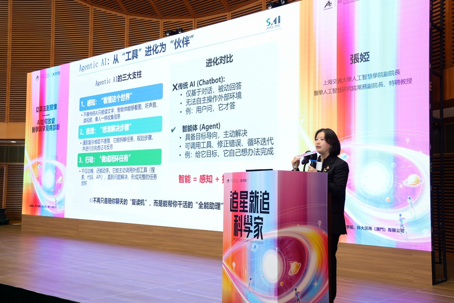 是次AI大講堂貫徹其跨學科視角與實踐導向,邀請上海交通大學人工智能學院副院長、醫學人工智能研究院常務副院長張婭教授以《從算法到關懷—AI如何改變醫學與罕見病診斷》為主題,闡述AI在醫學領域的最新突破,說明智能體人工智能(Agentic AI)如何整合醫學知識與基因資訊,構建可追溯推理鏈,協助醫生實現精準診斷。