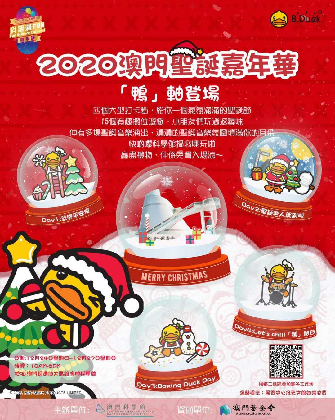 本館將於明天起一連四天舉辦2020澳門聖誕嘉年華「鴨」軸登場,與市民及旅客一同歡度聖誕佳節。