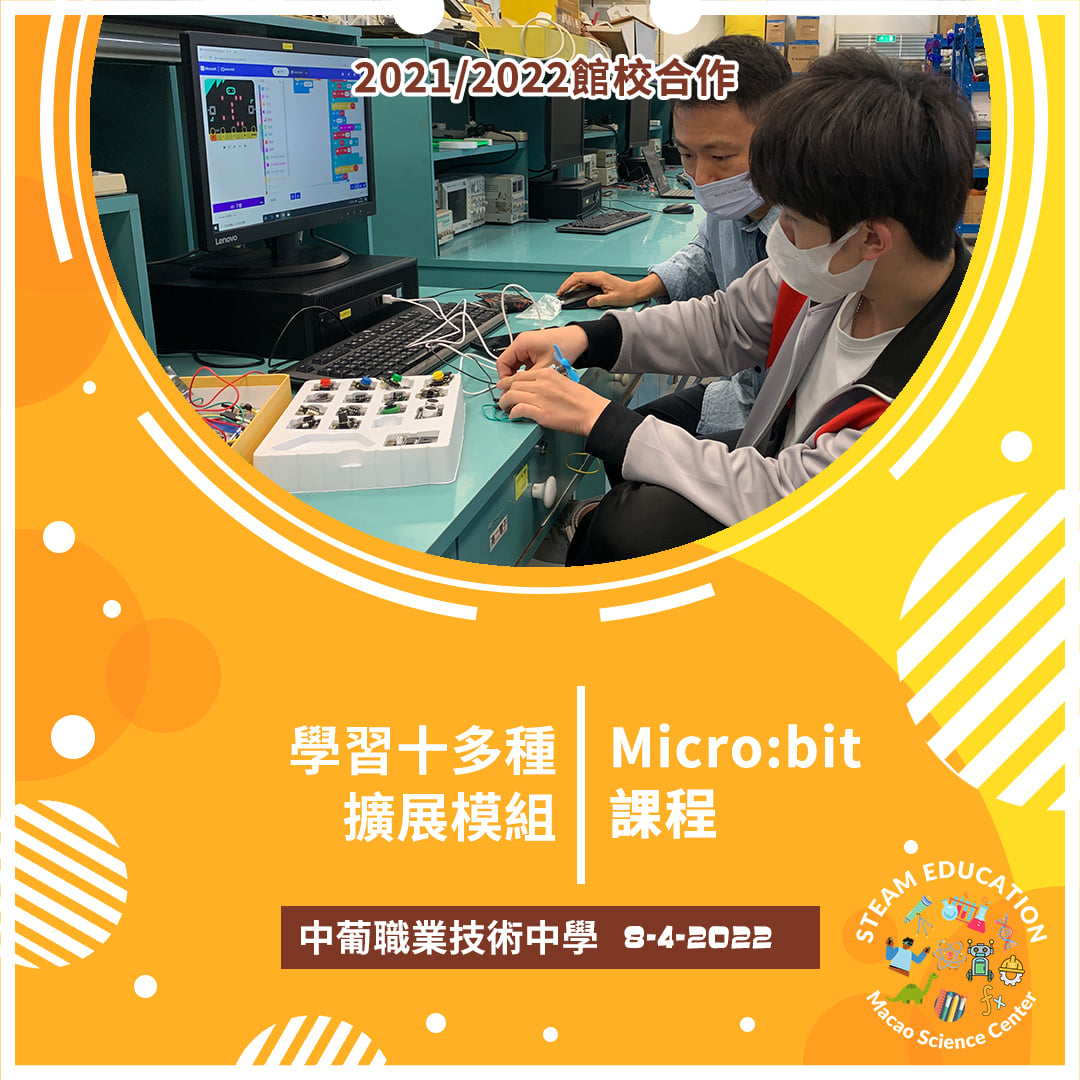 Micro:bit的功能繁多,當Micro:bit連接電子模組後,其可塑性及應用範疇更是千變萬化。中葡職業技術中學的同學們較早前已經學習了開發板的基本功能,亦熟悉線上編程平台的操作。在4月8日的課堂中,同學們學習了十多種擴展模組,例如:三色LED燈、光敏電阻、顏色傳感器、傾斜開關、超聲波傳感器、舵機及電機等的硬件接線及編程方法,提升了同學們利用Micro:bit將心中構思付諸實踐的能力。未來,同學們還有機會學到智能車及物聯網的相關知識。