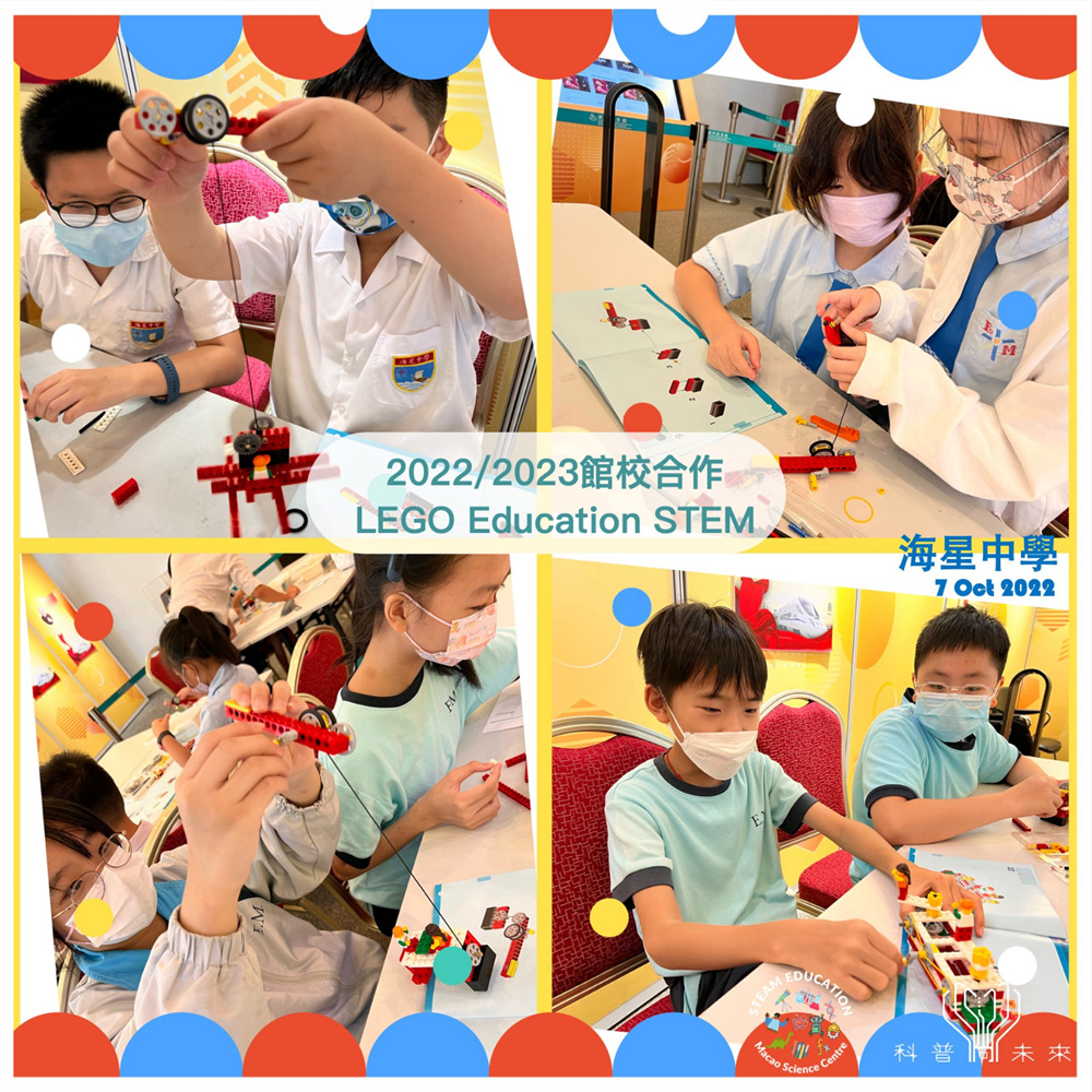參與LEGO Education STEM 工作坊的學生可利用樂高積木學習基礎機械知識。這一課便以滑輪這種常見的機械爲題,讓同學們利用樂高積木探索滑輪的用途及嘗試組裝工具,而他們更運用了上一課所學的齒輪應用知識製作了一台小玩意。