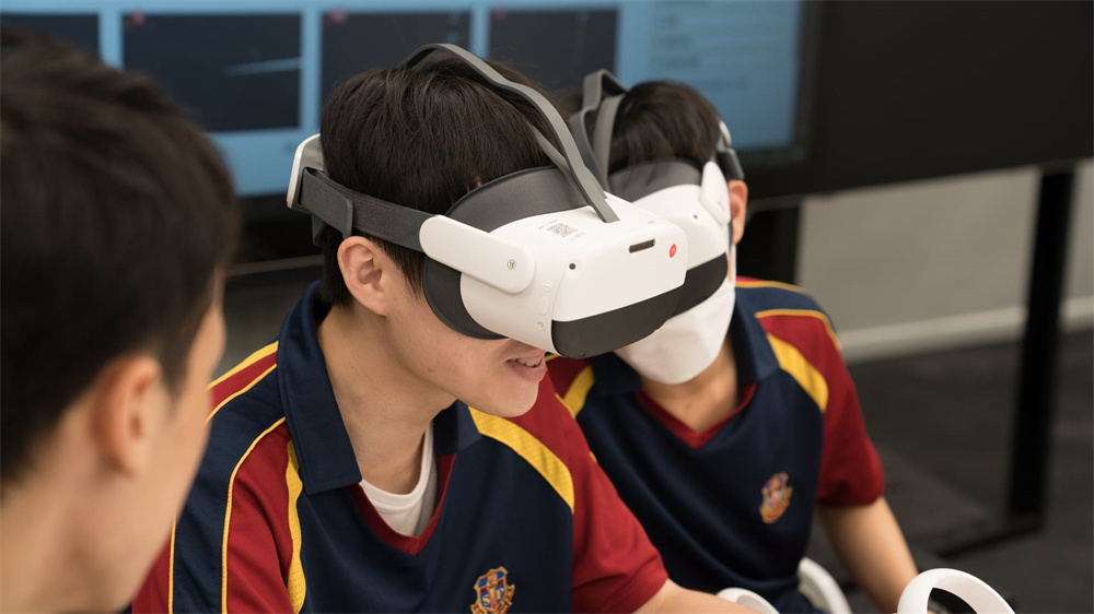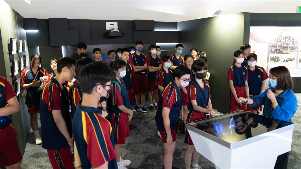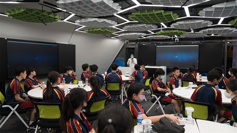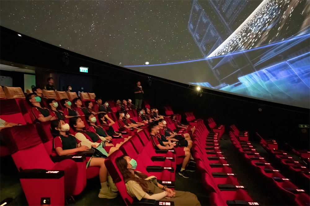 隨後,教育部的同事利用人工智慧(AI)機械人向同學們簡介教育部的職責及日常工作,包括:籌備科普教育活動、展覽及館校合作項目等,還需掌握科技發展趨勢及熱門科技產品的應用。同學們先後試用了虛擬實景3D眼鏡,又參觀了中國科學家精神展廳,瞭解科普講解員的工作。最後,他們轉到天文館,聽取天文館部同事及志願者介紹館內的球幕放映系統及其他高新科技設備、部門職責及工作內容、入職條件、行業前景及個人經驗分享。